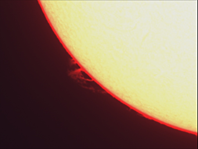 Telescope: Vixen ED130SS -- Mount: AP 900 GTO -- Camera: ZWO ASI183MC -- Filter: DayStar Combo Quark (Chromosphere) -- Processing: ImagesPlus 6.5 -- Location: MHO -- Date: 4-Jul-2022 --