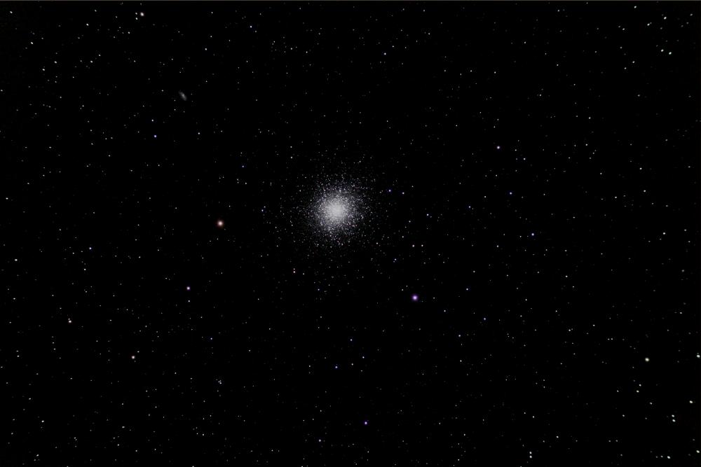 Mag. 7.4, Size 18'x12', Dist. 5000 ly. Telescope: Celestron C14 Reducer: AP CCDT67 at f/7.4 Mount: AP 900 GTO using autoguider Camera: Canon Rebel XS (1000D), ISO 1600 Exposure: 8 5 minute exposures + 20 darks Processing: ImagesPlus 3.82 Location: NCO Date: 2-Sep-2010 |