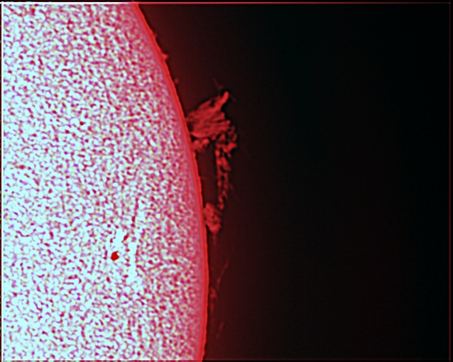 Telescope: Askar 120APO -- Mount: AP 900 GTO -- Camera: ZWO ASI183MC bin 2x2 -- Filter: DayStar Combo Quark (Chromosphere) -- Exposure: -- Processing: ImagesPlus 6.5 -- Location: MHO -- Date: 23-Aug-2024 --